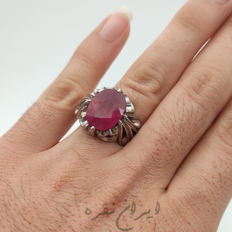 انگشتر نقره دستساز با نگین یاقوت سرخ آفریقایی
