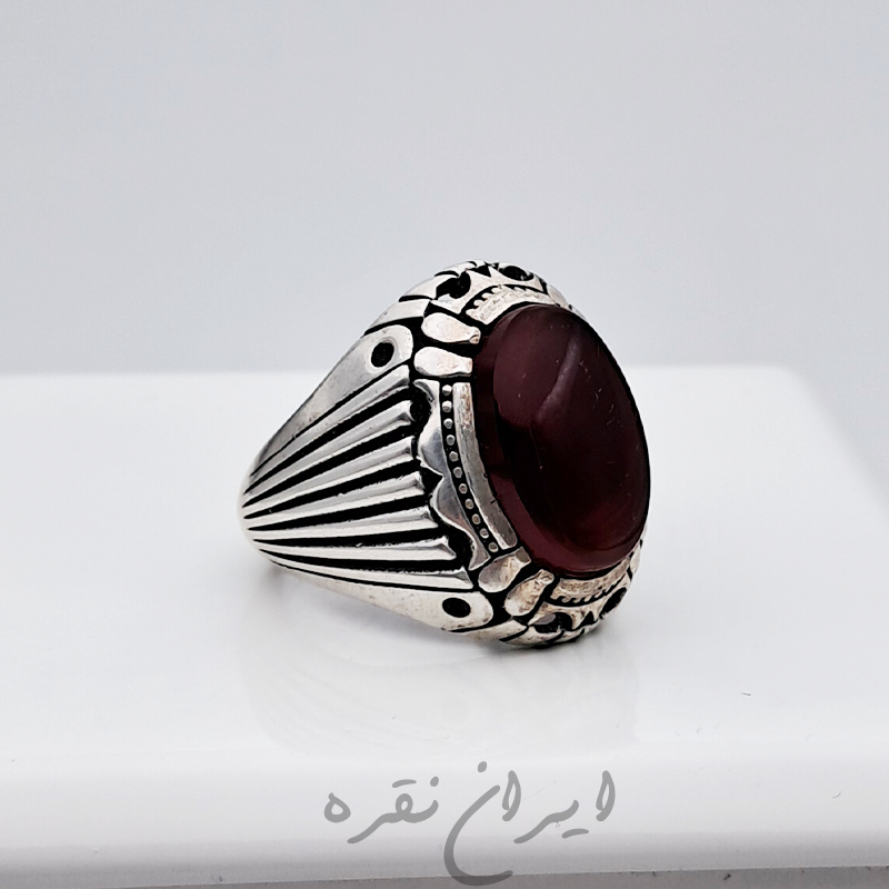 انگشتر نقره عقیق خراسان با رکاب ماشینی