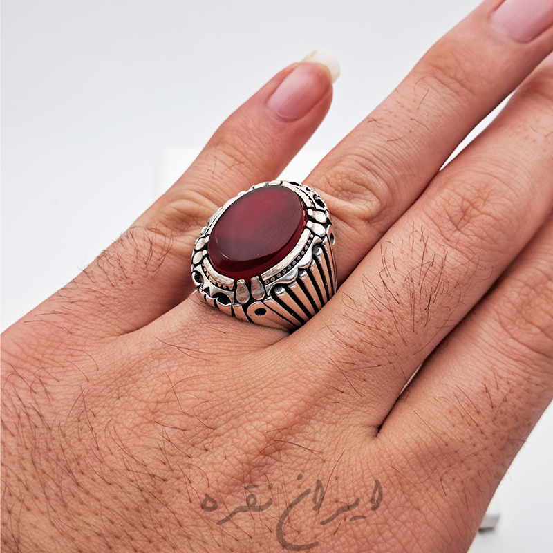 انگشتر نقره عقیق سرخ با رکاب ماشینی