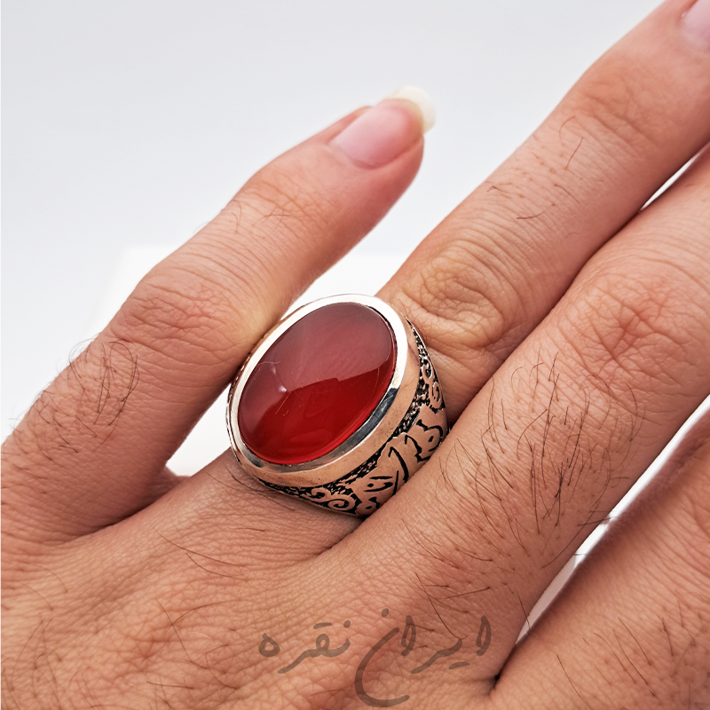 انگشتر نقره عقیق خراسان با رکاب ماشینی