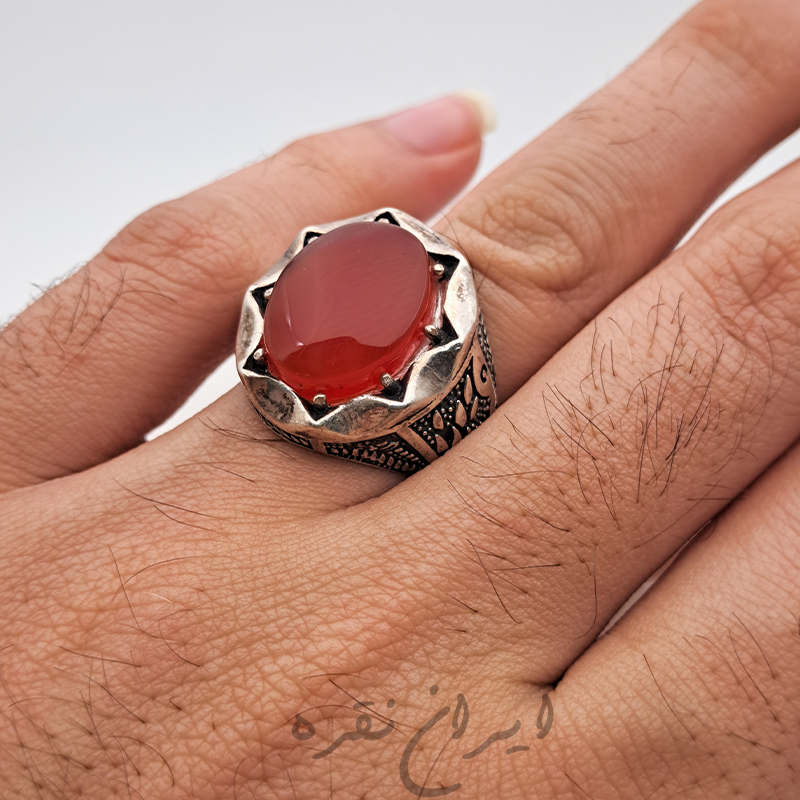 انگشتر ماشینی نقره عقیق یمنی پرتقالی